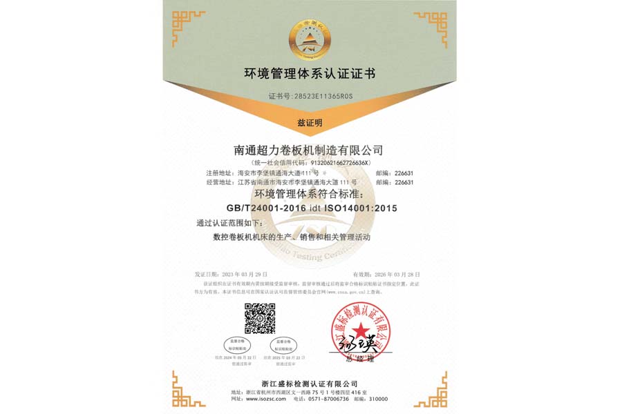 環境管理體系認證證書